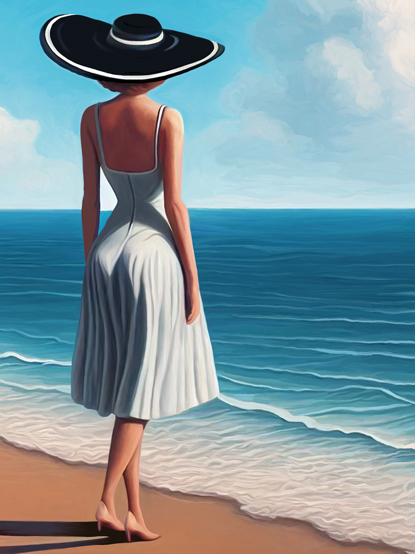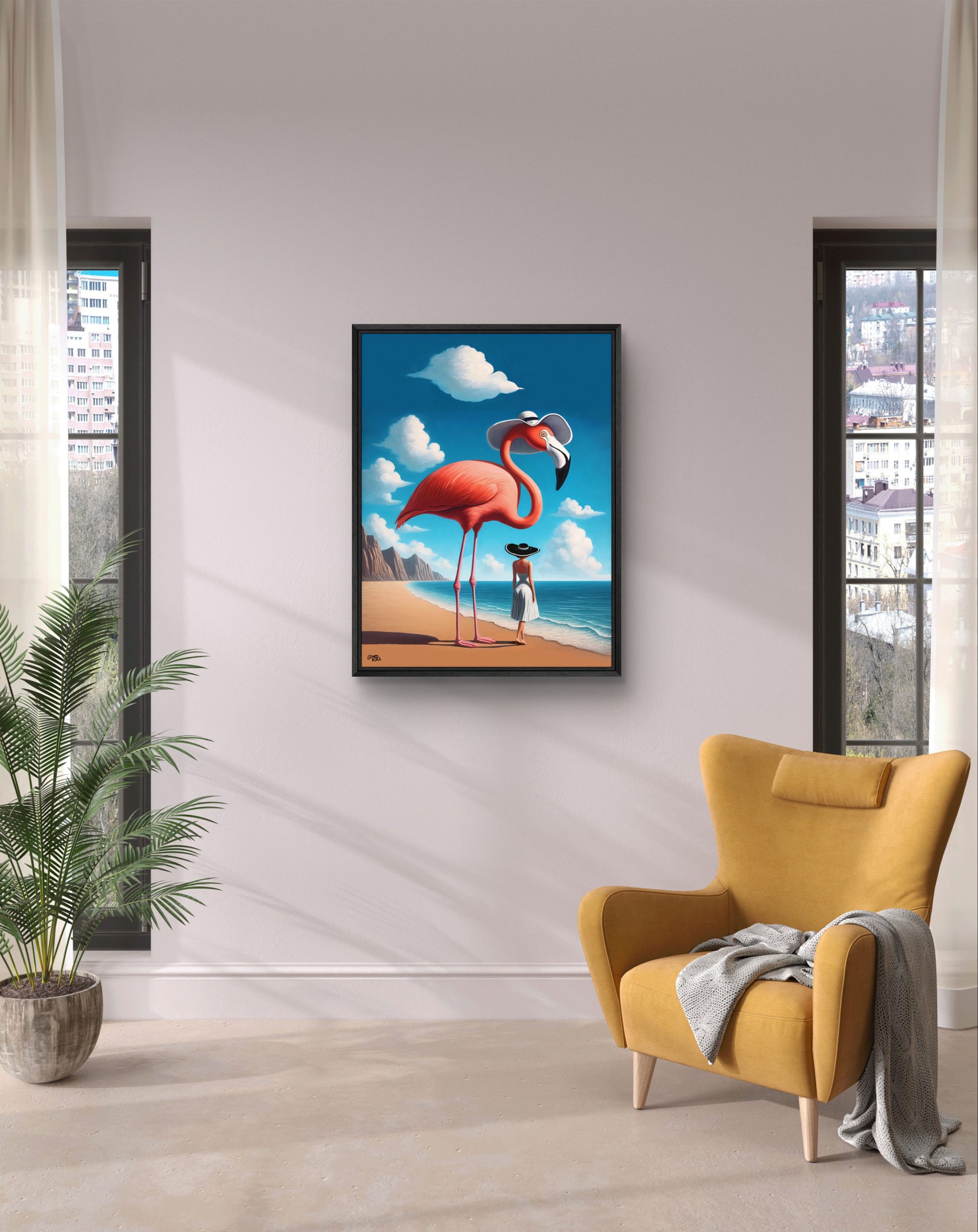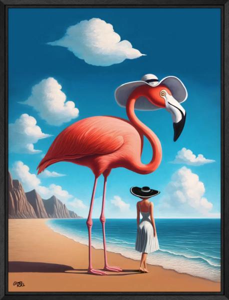 Titre de l’œuvre : Rencontre onirique du Flamant rose et de la dame au chapeau